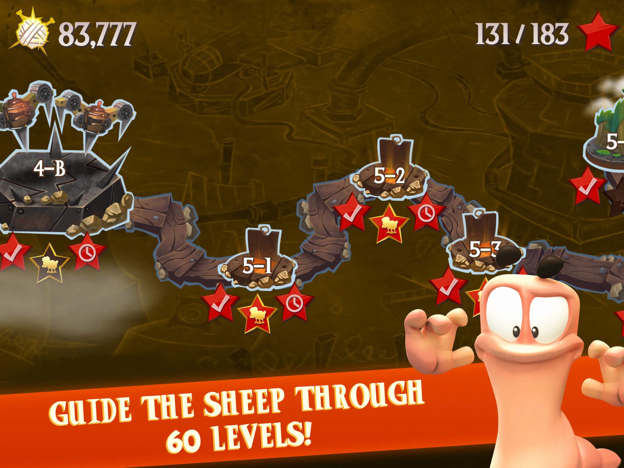 For over nineteen years sheep have been an integral part of the worms’ fearsome arsenal. Held for years within the evil thrall of their diabolical masters the sheep are finally making a dash for freedom! Escaping the tyrannical worms, the flock must dodge its way past all manner of lethal machinery and traps as they negotiate their path through the confinement of the Worms’ weapons factory out into the testing grounds and ever onwards towards pastures green.