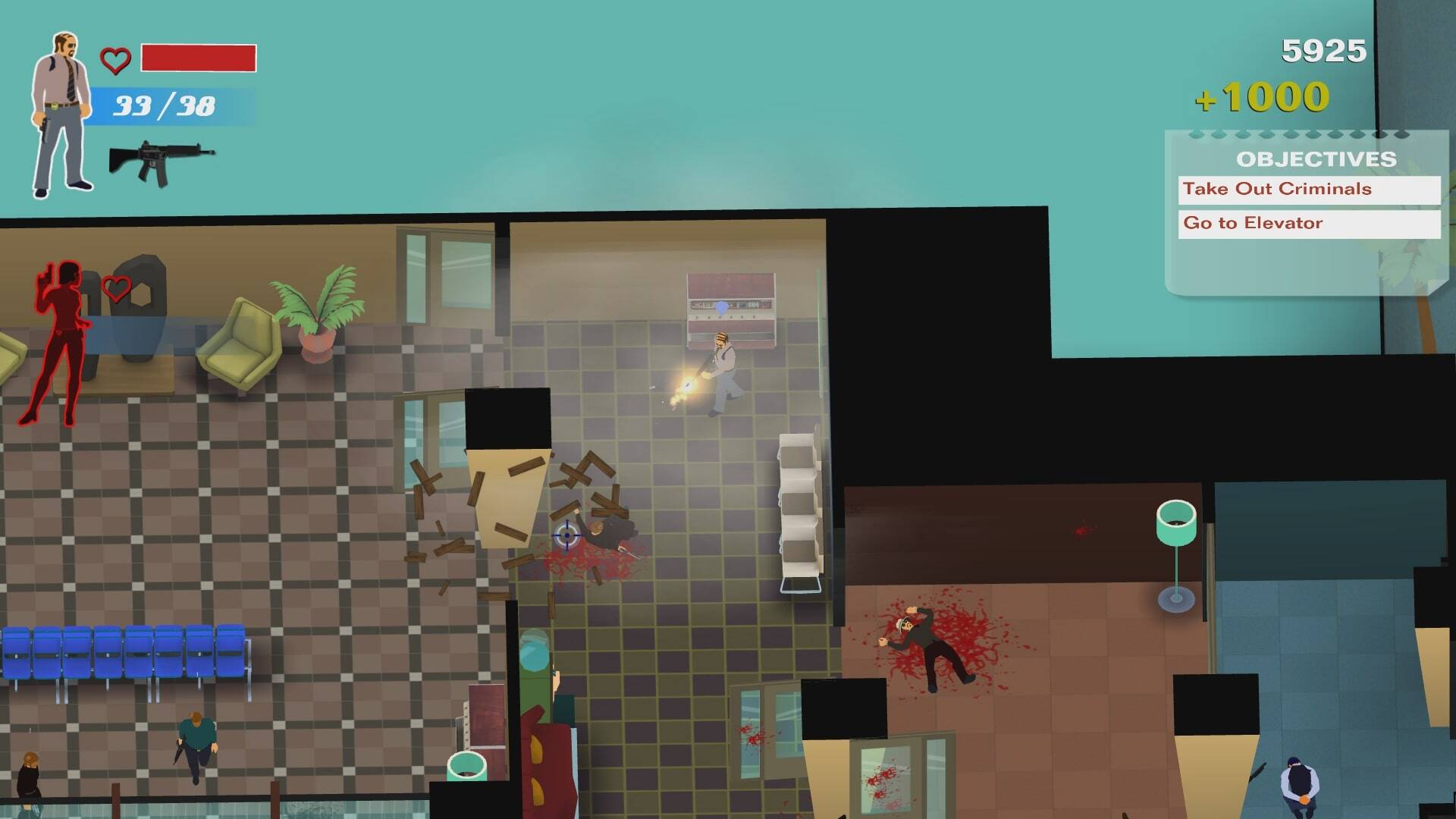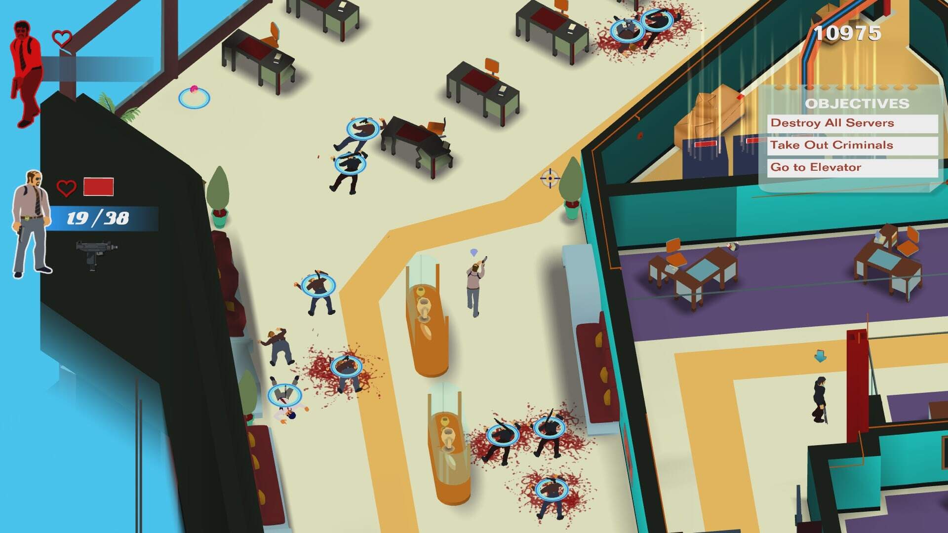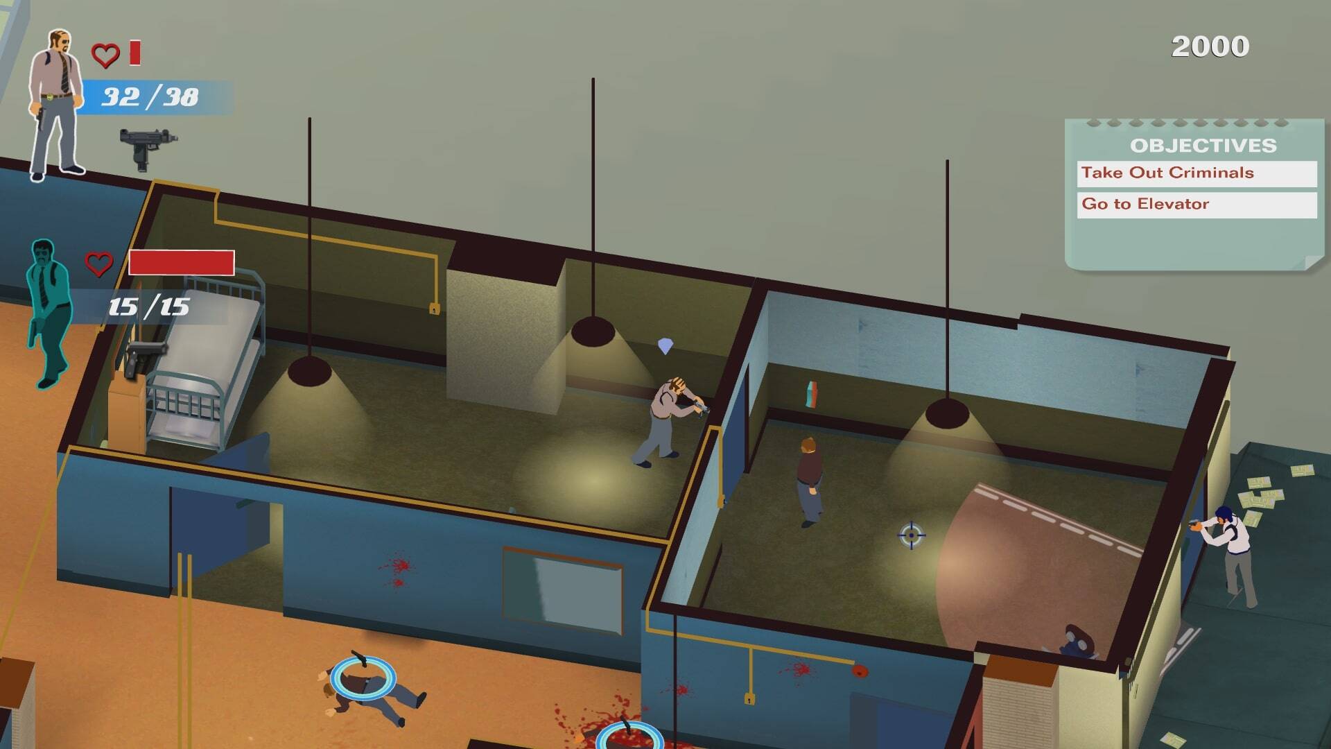 A smart targeting system UI allows, you, the player to position your cops tactically whilst taking out the bad guys in real time.