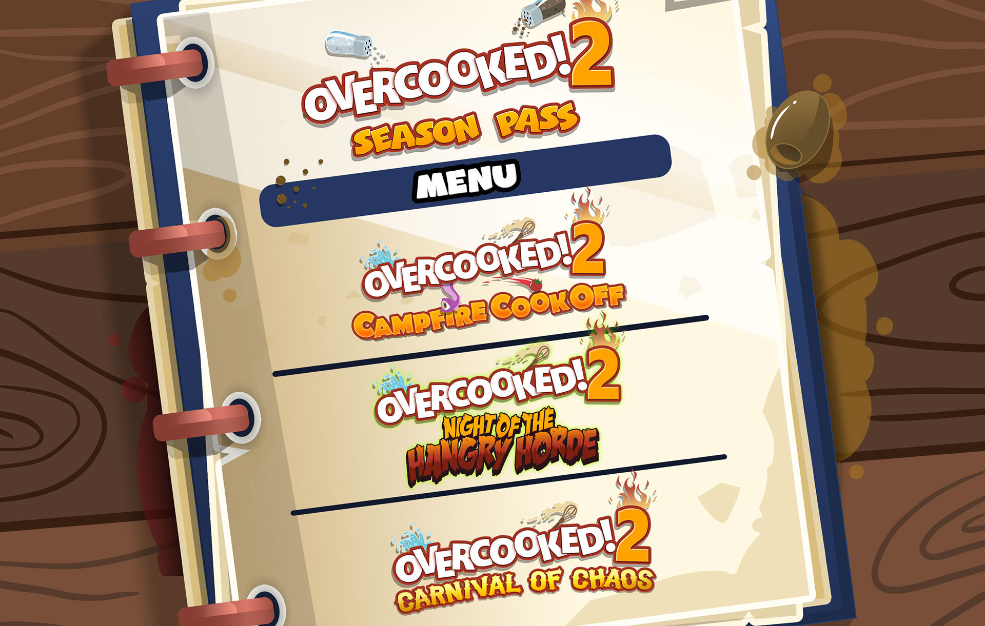 Overcooked! 2 and every piece of previously-released DLC – Surf ‘n’ Turf, Campfire Cook Off, Night of the Hangry Horde and Carnival of Chaos.