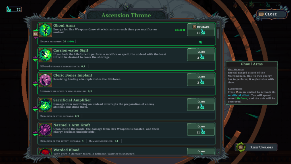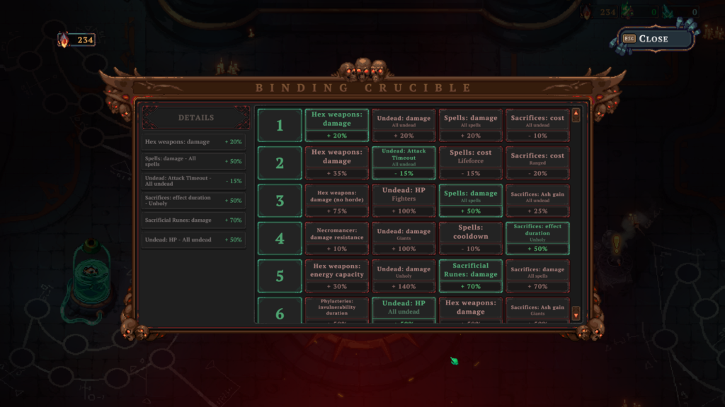 With each rank, health and damage will increase significantly, depending on how many of the undead are combined. You’ll find them to be more powerful, and they will also decay slower. You can increase High Undead limits and strength in three ways – during Necromancy power upgrade, in the Binding Crucible, and in the Throne of Ascension.