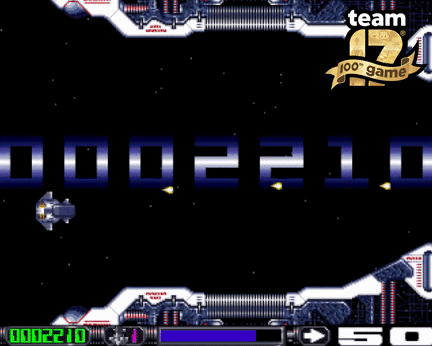 Difficulty wasn’t the only thing reviewers picked up on. Some also questioned the extremely unusual decision to display the player’s score so prominently, right in the middle of the screen and in the background of the gameplay. Mariner laughs, “Sooooo… I guess that was my doing. Since we’d come from the demoscene, we wanted to squeeze every last bit of performance out of the Amiga and this was my attempt at creating a readable HUD without the need to look away from the action. There was a neat trick on the Amiga where you could do stuff like that using what’s called a ‘copper list.’ The top and bottom background graphics are actually a reflection, and there was this space between them. I can’t entirely remember how it came about, it was probably the result of a bet over a beer about whether I could squeeze a huge score in the middle!”