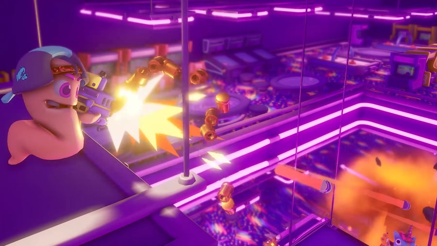 In this beta you’ll be playing Deathmatch in the Missile Mall arena. You will have access to the Hand Cannon, Shotgun, Assault Rifle, Bazooka, Baseball Bat, Grenade, Holy Hand-Grenade and Banana Bomb. There will be daily challenges and customisation unlocks up to level 10, but there is no weapon progression and your progress will not carry over to the full game.